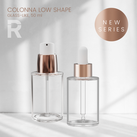 The modern design with straight shoulders and a base that fits comfortably in the hand is a perfect match for this new cosmetics line.