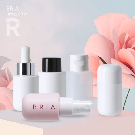 Dank der vielfältigen Verschlussmöglichkeiten lässt sich unsere BRIA 30 ml individuell auf Ihr Produktkonzept abstimmen. Gefertigt aus robustem HDPE überzeugt sie durch Leichtigkeit, Stabilität und Zuverlässigkeit – für ein rundum hochwertiges Produkterlebnis.